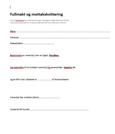 Vi kan hjelpe deg med å få sendt faktura driekte til NAV, men da trenger vi en fullmakt fra deg.
